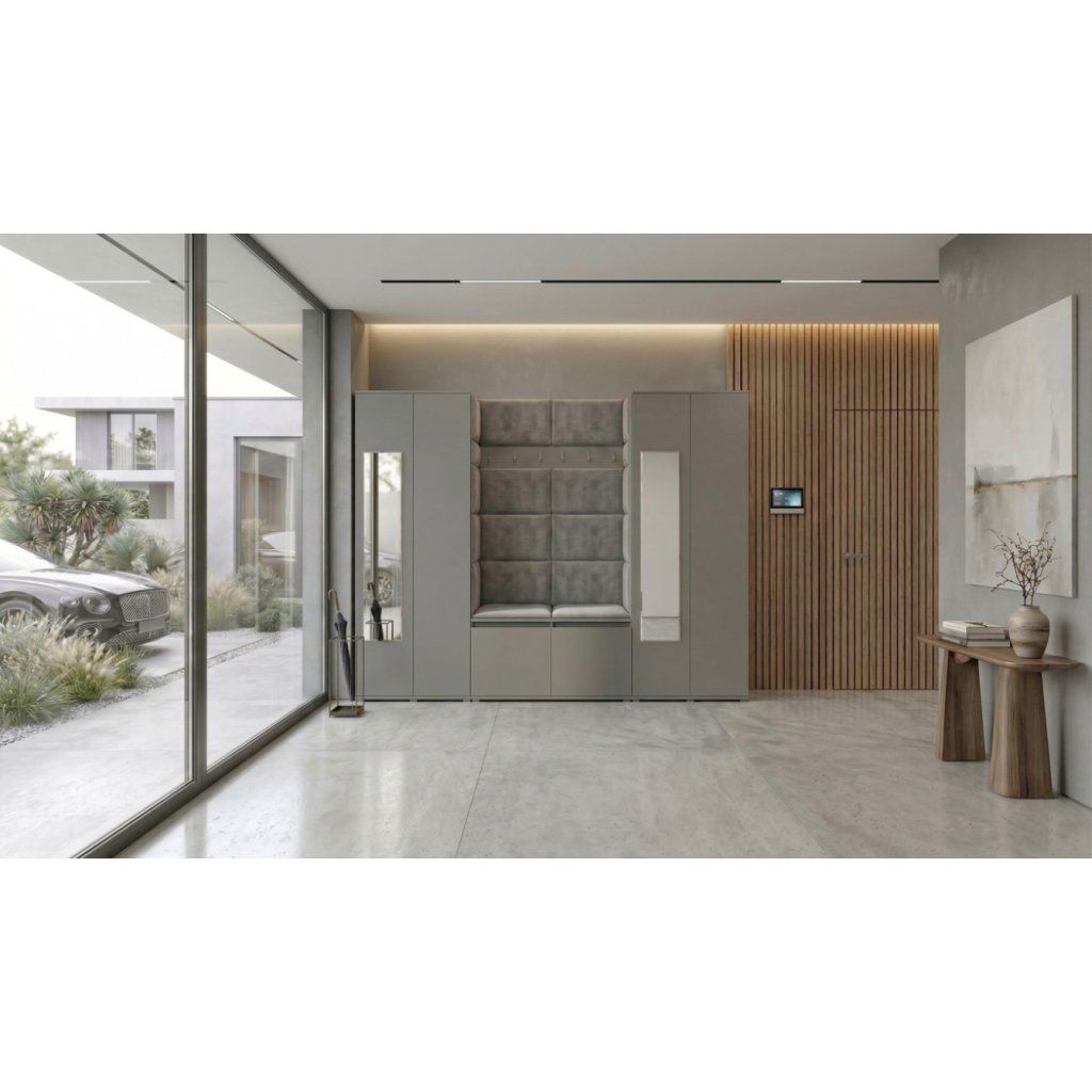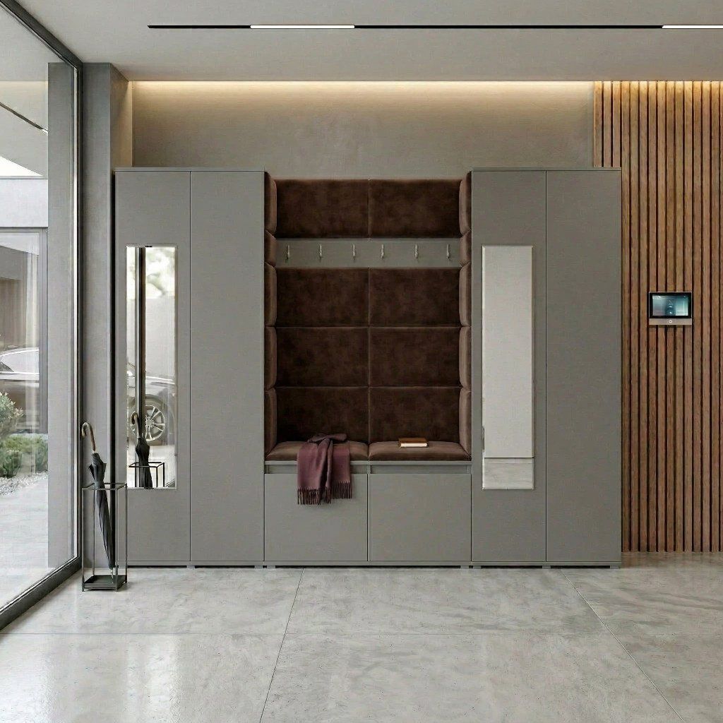 Předsíňová stěna s čalouněnými panely Trinity 10 - Grafit / Hnědá 2307