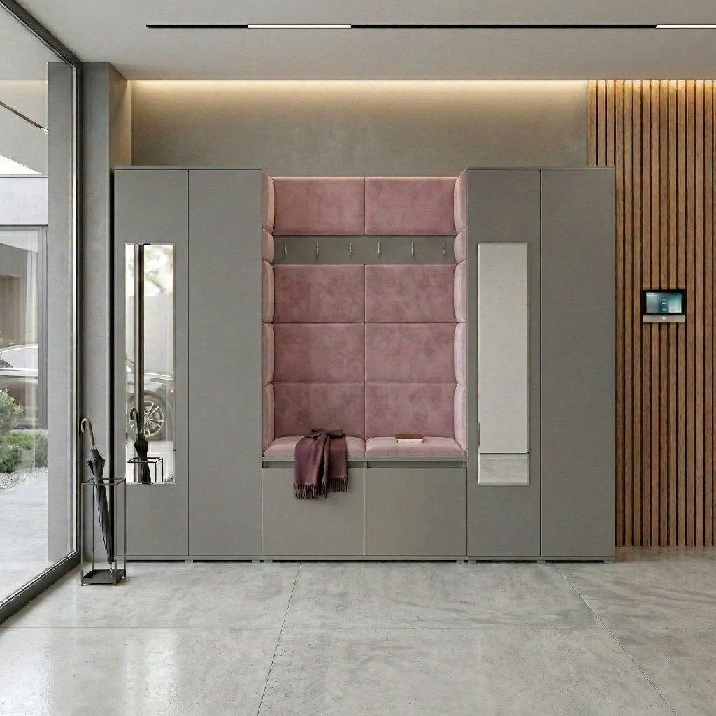Předsíňová stěna s čalouněnými panely Trinity 10 - Grafit / Světlá růžová 2319