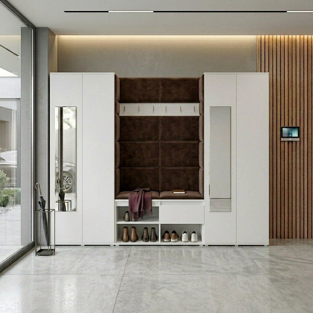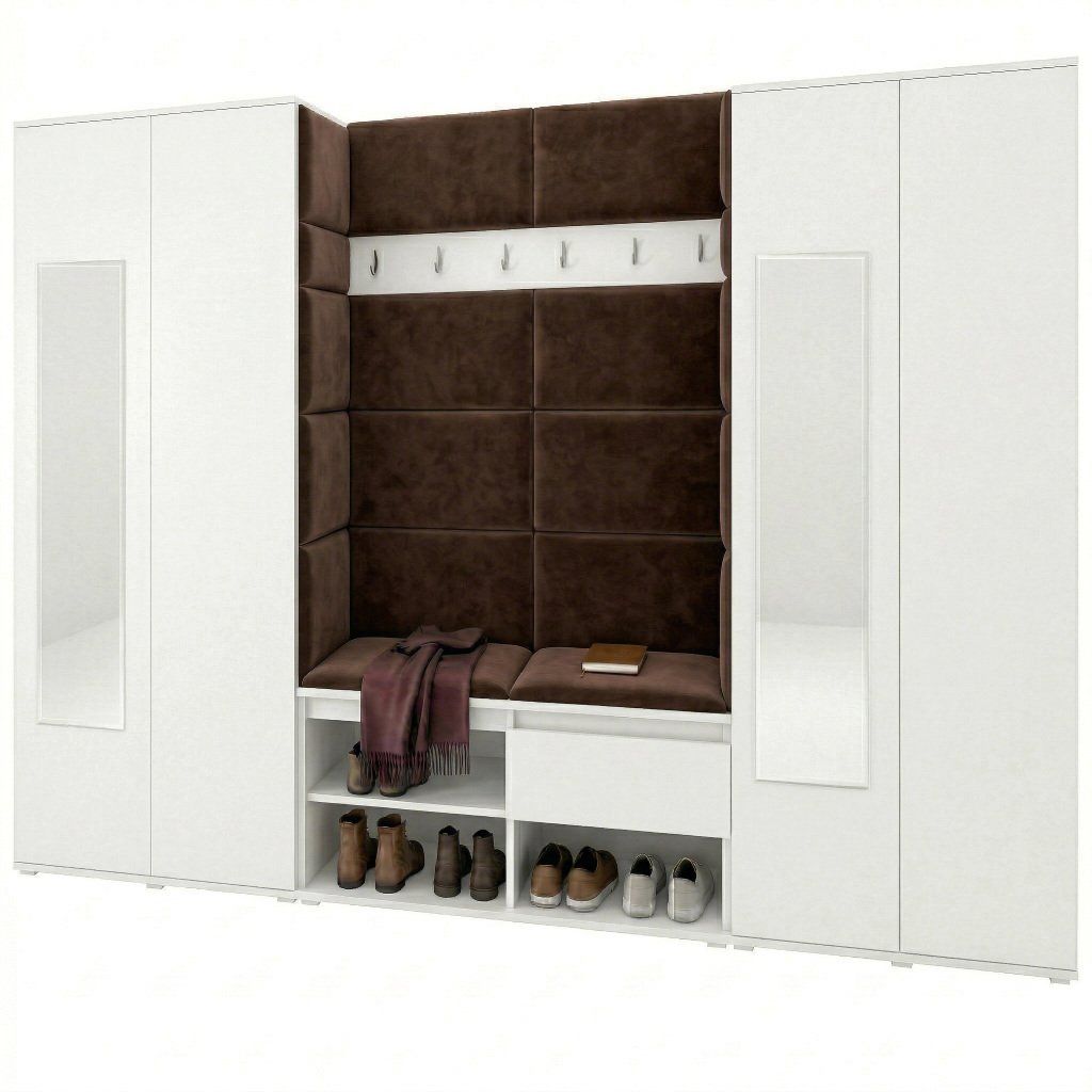 Předsíňová stěna s čalouněnými panely Trinity 10 - Bílá / Hnědá 2307