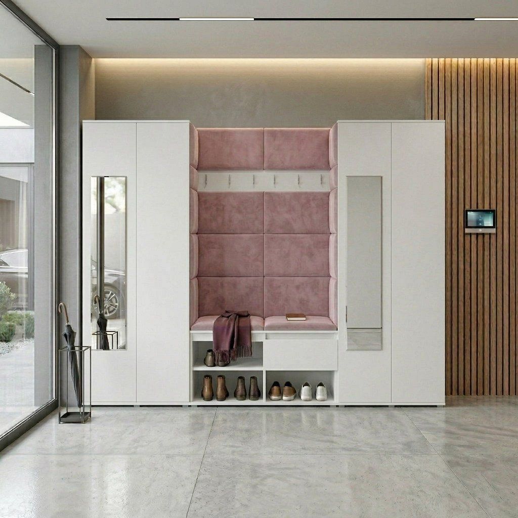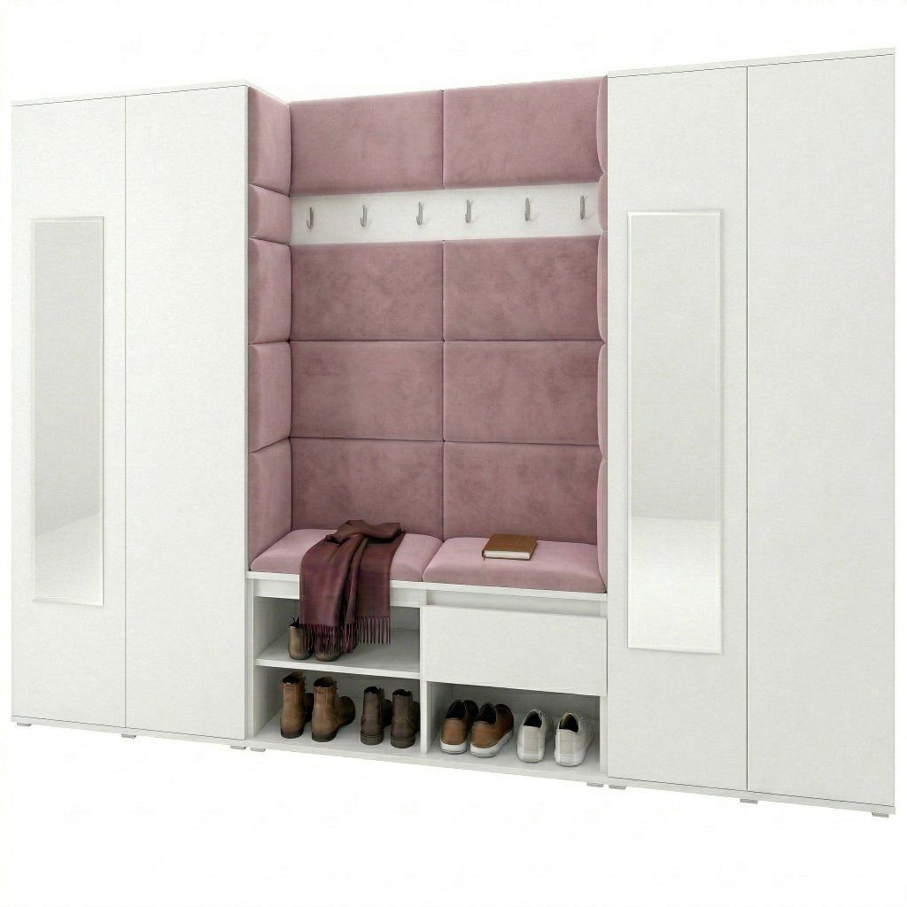 Předsíňová stěna s čalouněnými panely Trinity 10 - Bílá / Pastelová růžová 2319