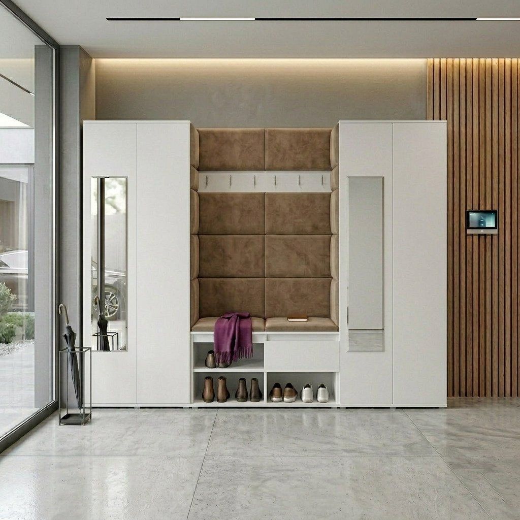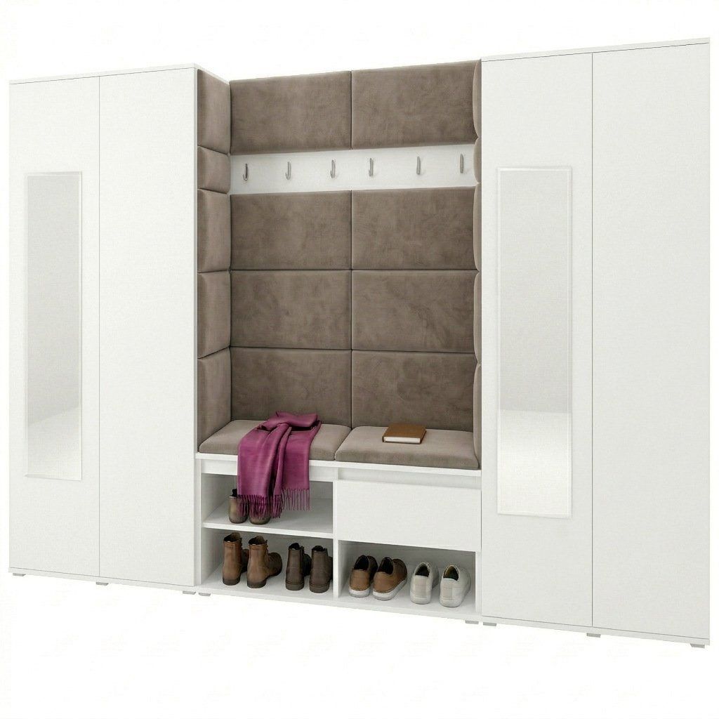 Předsíňová stěna s čalouněnými panely Trinity 10 - Bílá / Světlá béžová 2303