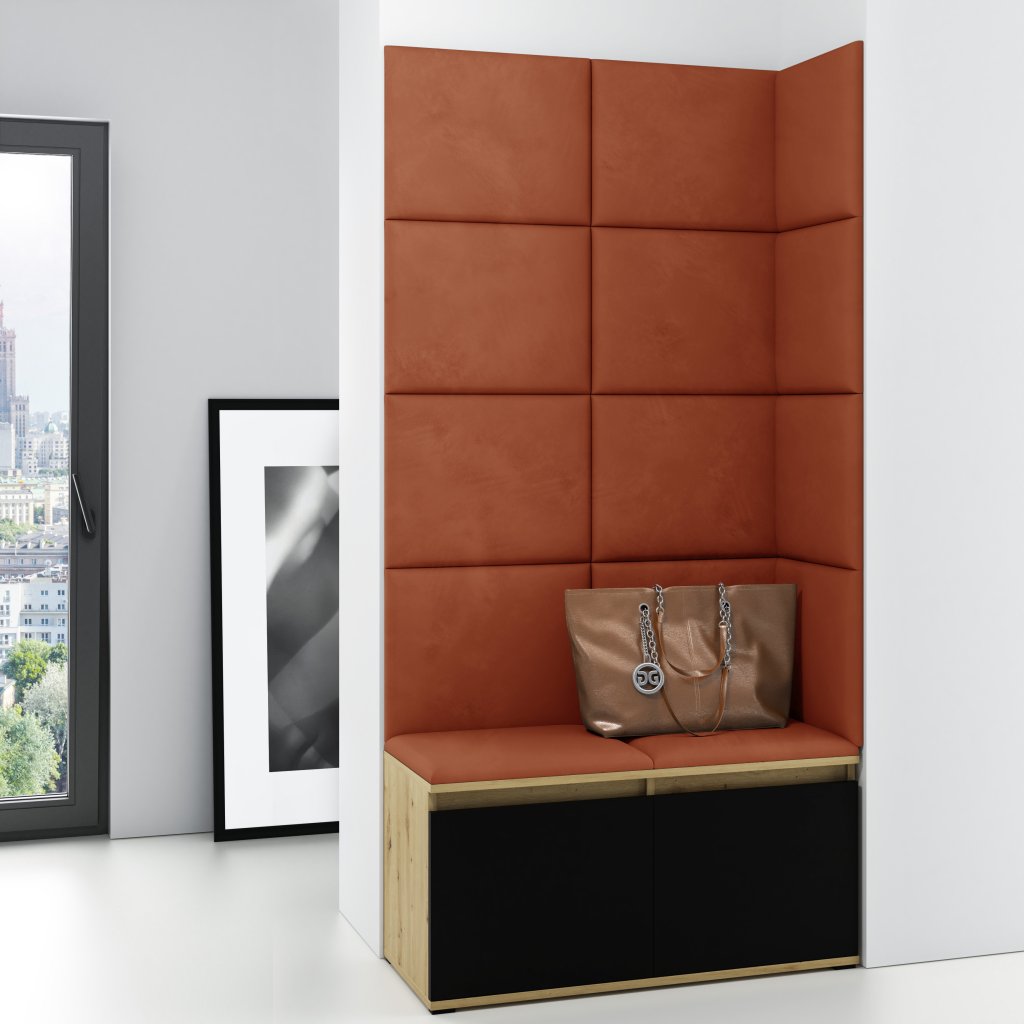 Předsíňová stěna s čalouněnými panely Trinity 2 - Dub Artisan s černou / Okrová 2325