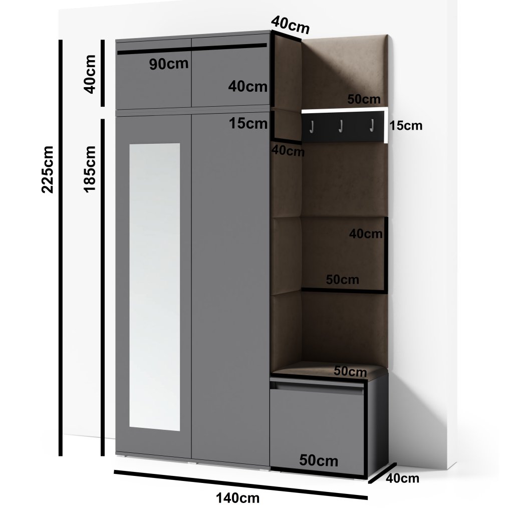 | Funkce/vybavení: | Se zrcadlem, S prostorem pro sezení, S botníkem, S čalouněnými panely, Se skříní, S vrchními skříňkami |