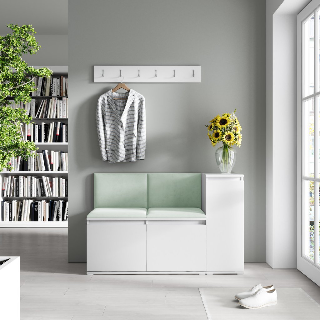 Předsíňová stěna s čalouněnými panely Trinity 25 - Bílá / Světlá zelená 2321