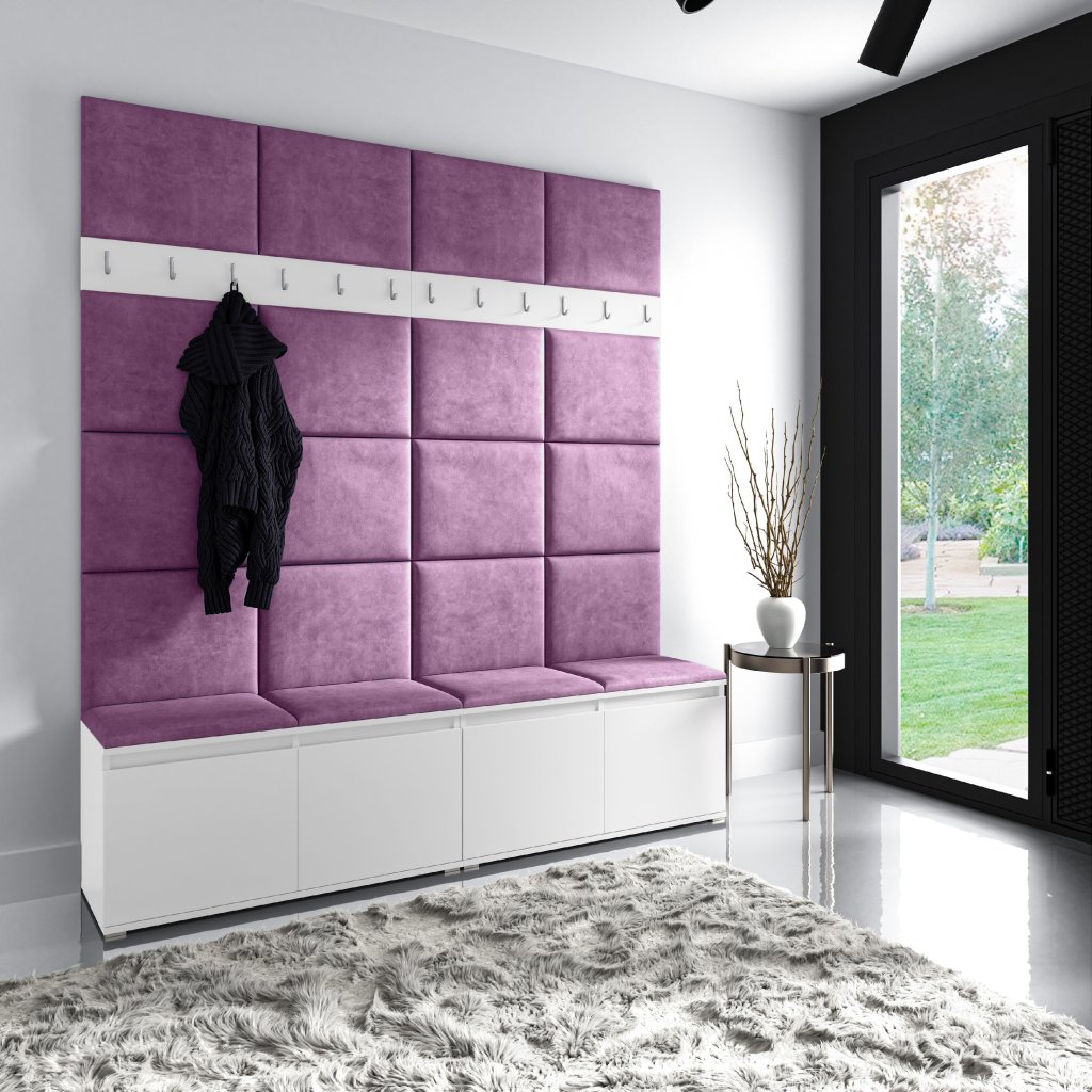 Předsíňová stěna s čalouněnými panely Trinity 4 - Bílá / Fialová 2311