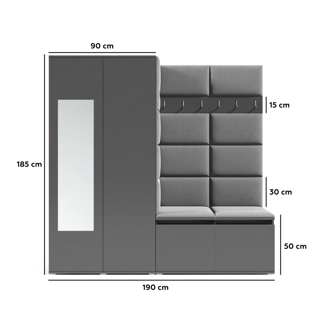 | Funkce/vybavení: | Se zrcadlem, S věšákem, S prostorem pro sezení, S botníkem, S čalouněnými panely, Se skříní |