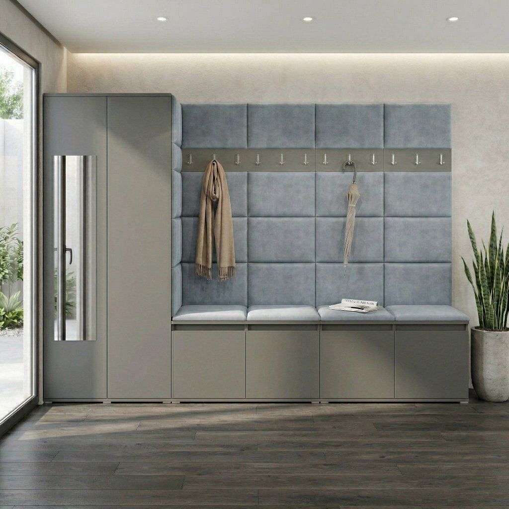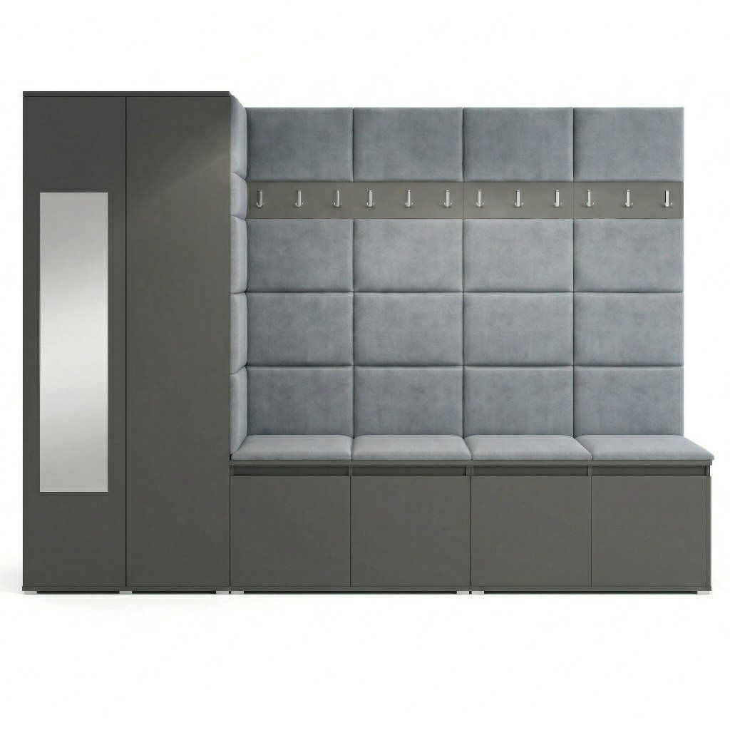 Předsíňová stěna s čalouněnými panely Trinity 9 - Grafit / Šedá 2314