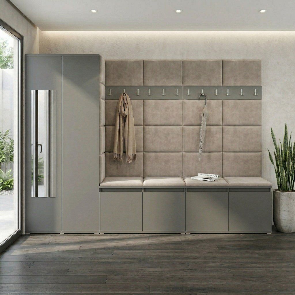 Předsíňová stěna s čalouněnými panely Trinity 9 - Grafit / Světlá béžová 2303
