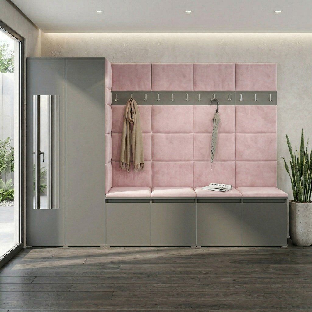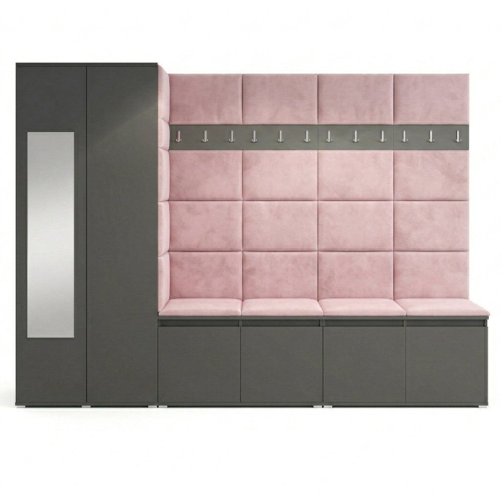 Předsíňová stěna s čalouněnými panely Trinity 9 - Grafit / Světlá růžová 2319