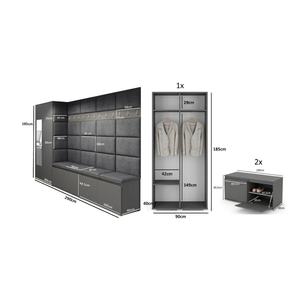 | Funkce/vybavení: | Se zrcadlem, S věšákem, S prostorem pro sezení, S botníkem, S čalouněnými panely, Se skříní |