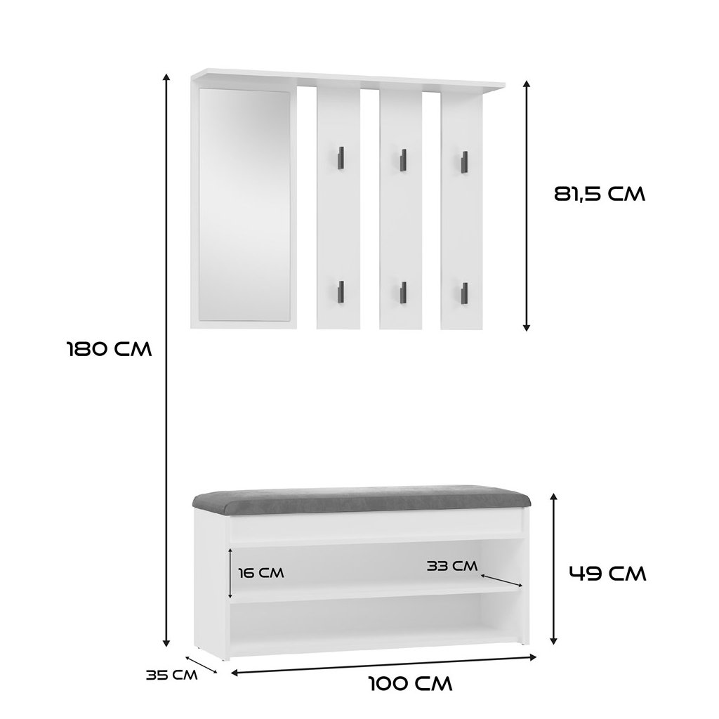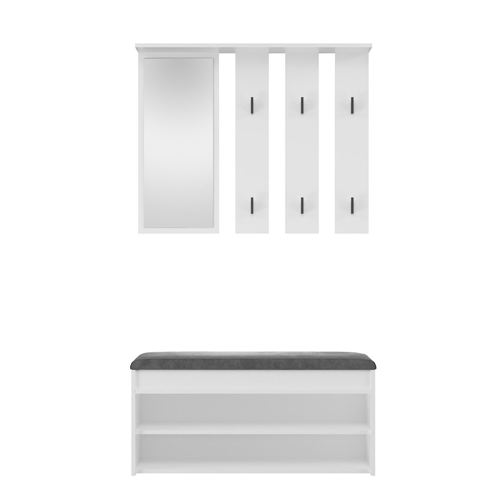 Sada věšáku se zrcadlem + botník se sedákem a úložným prostorem.