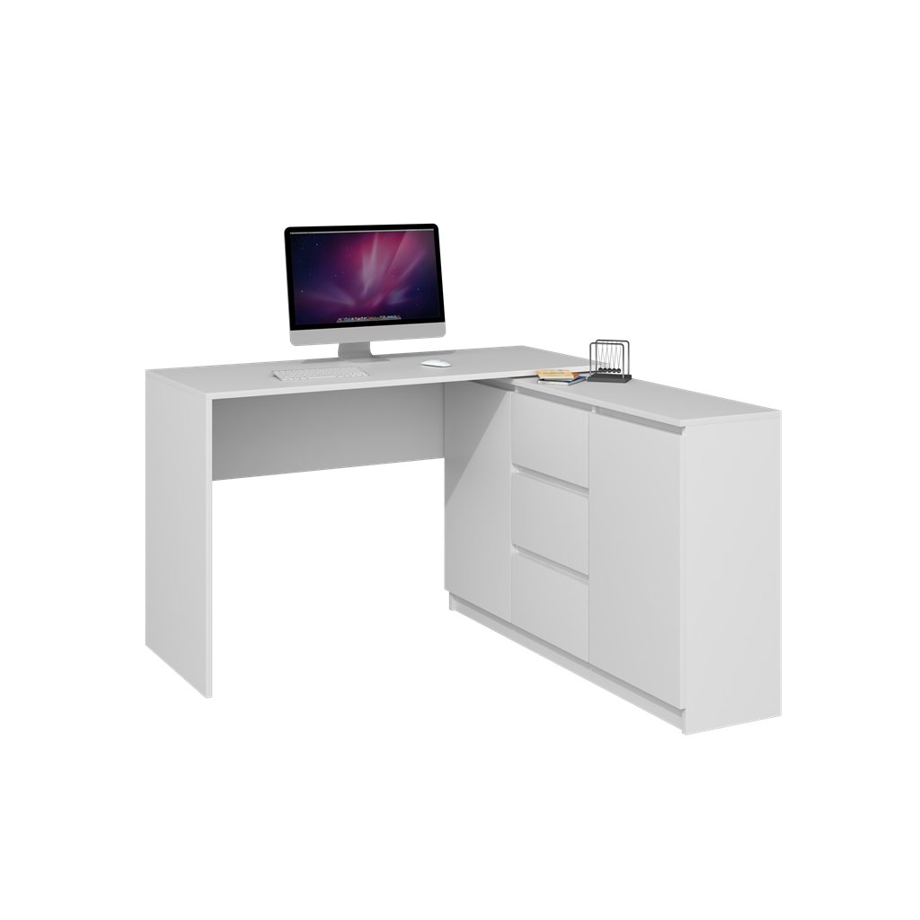 Rohový psací stůl PLUS s komodou 120 cm 2D3S - Bílý mat