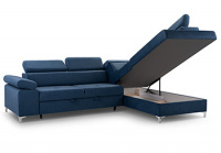 Rohová rozkládací pohovka MADRID je dostupná v zajímavých barvách a moderní stříbrné nohy dodávají moderní styl. Nastavitelná opěrka hlavy. Boční část sedačky s nastavitelnou loketní opěrkou. Sedačka je vybavena spacím výsuvným prostorem o velikosti 203x127cm a úložný prostor na lůžkoviny. Zadní strana sedačky je potažena látkou ladící s barvou celku (tudíž je možné umístit do prostoru místnosti). Po rozložení je část určená na spaní čalouněna v barvě sedačky.