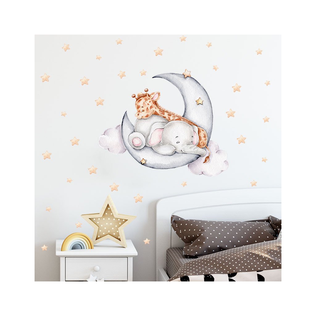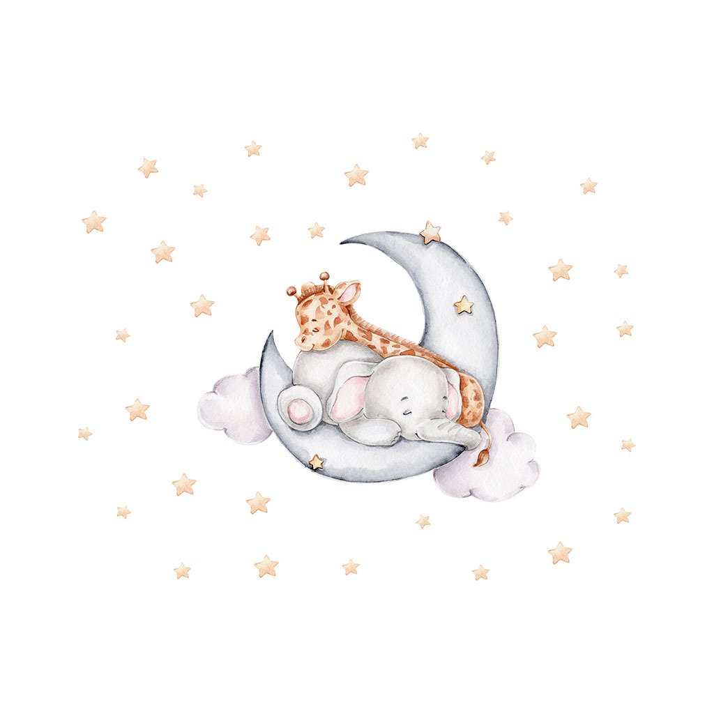Samolepky na zeď - slůně a žirafa na měsíčku