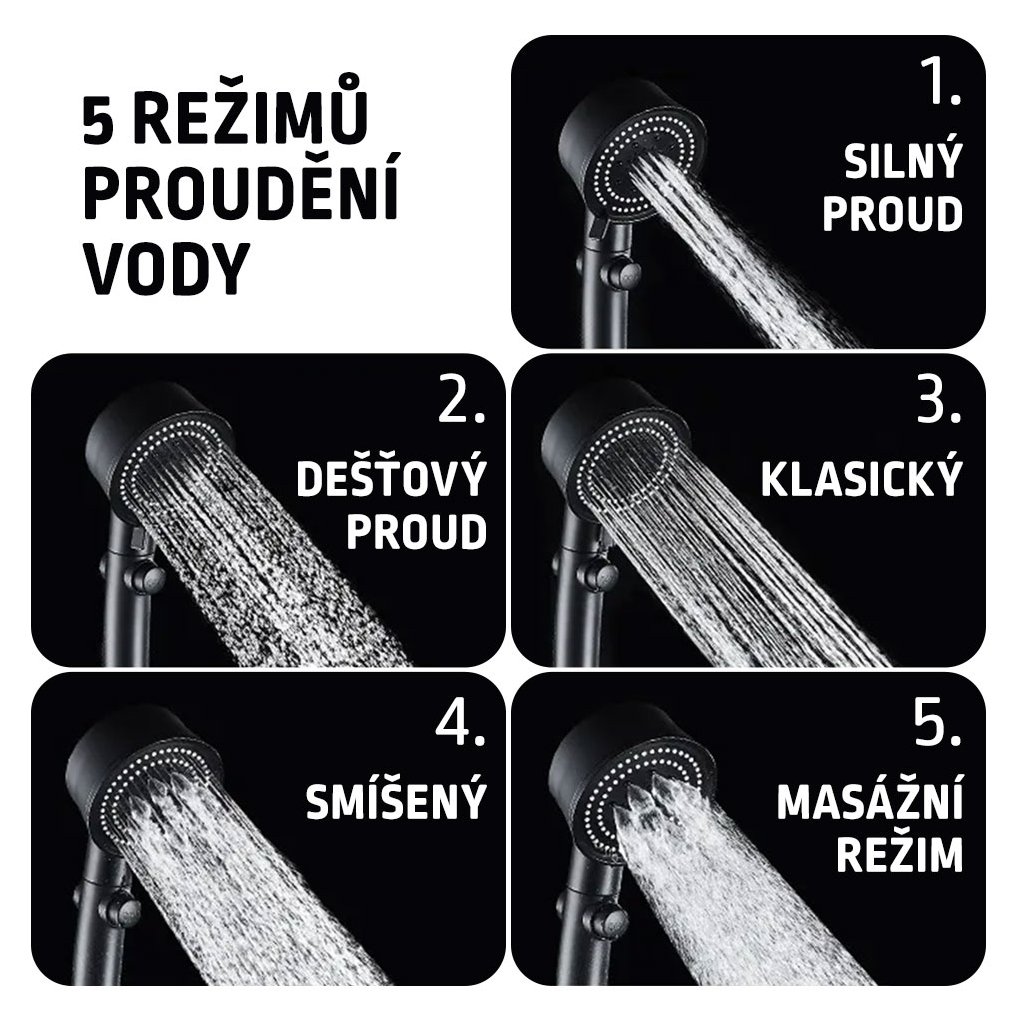 Sprchová hlavice TURBO, 5 režimů proudu vody - černá s modrou
