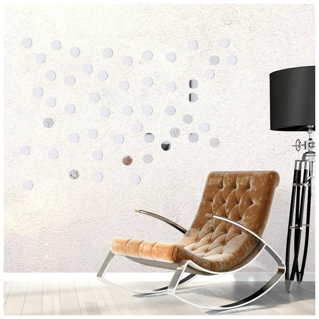 Designové samolepky ve formě malých kulatých zrcadélek. Ozvláštní každou zeď, dlaždičky či zrcadlo u vás v koupelně. Zrcadlový efekt navíc opticky zvětší prostor. Stačí strhnout ochrannou fólii a nálepku dát na požadované místo. Jaký design vytvoříte je jen na vás.