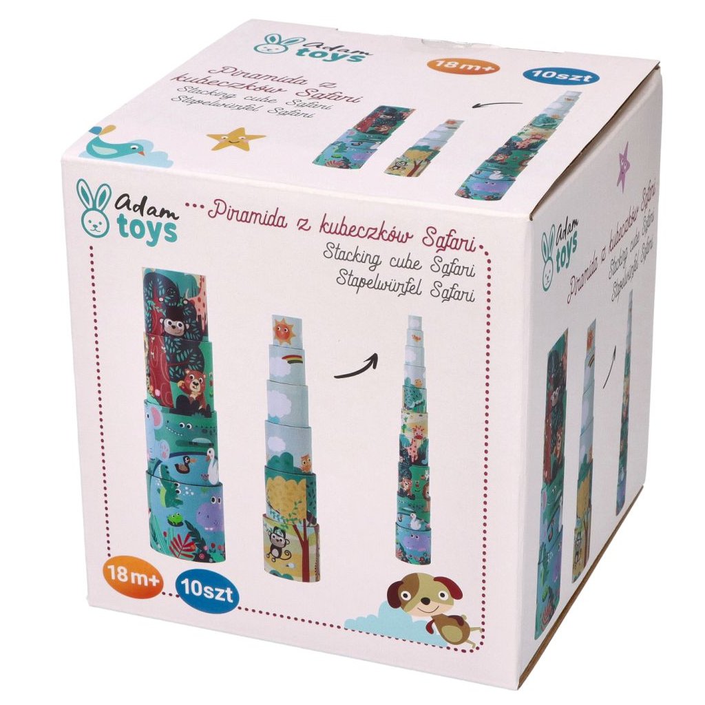 Safari pyramida je sada 10 barevných kelímků různých velikostí, které lze použít ke stavbě věže nebo k uspořádání mnoha různými způsoby. Díky unikátním ilustracím se malí seznámí se zvířátky z džungle a naučí se počítat od 1 do 10. Pyramida je vynikající hračka, která vám umožní procvičit motorickou koordinaci a obratnost.