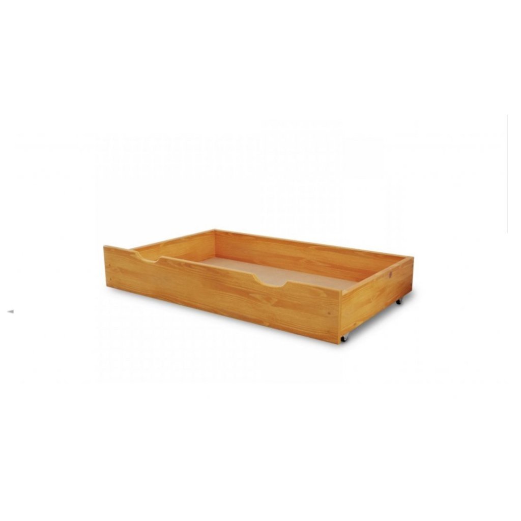 Univerzální šuplík pod postel je chytrým řešením pro každou ložnici. Získáte s ním cenný úložný prostor na lůžkoviny, sezónní oblečení nebo hračky, které chcete mít uklizené, ale stále po ruce. Čelo z masivu borovice a korpus z kvalitní laminované desky zaručují odolnost a snadnou údržbu. Díky praktickým kolečkům je manipulace se šuplíkem naprosto snadná. Skvěle se hodí ke všem námi nabízeným postelím a skvěle doplní i noční stolky z masivu borovice.