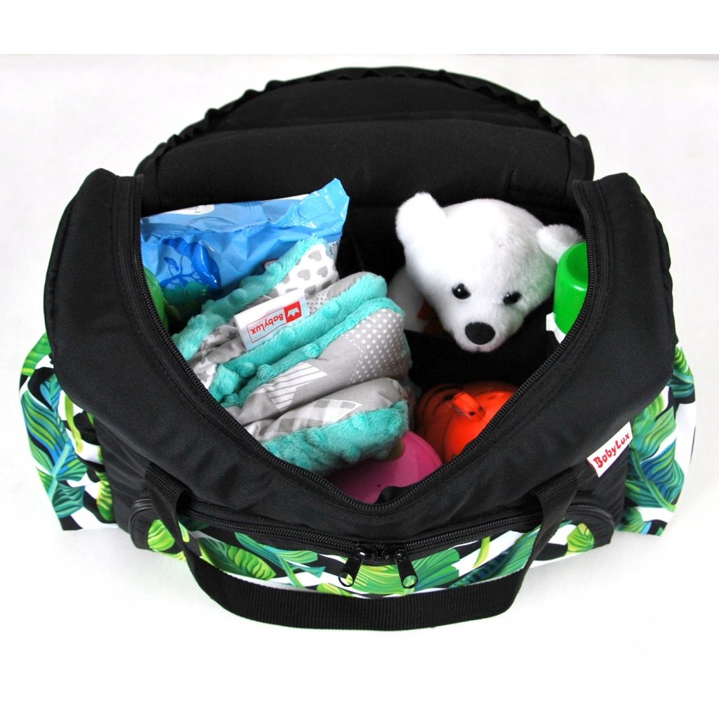 Taška je také vybavena dlouhým popruhem pro nošení přes rameno a ušima pro nošení v ruce. V případě, že byste chtěli tašku upěvnit na kočárek je taška vybavena klipy, kterými ji zachytít na kočárek. V případě, že nemá Váš kočárek úchytku na tašku je možné ji připevnit také suchými zipy, které jsou taktéž součástí tašky. Tedy tašku je možné připevnit na kterýkoliv druh kočárku.