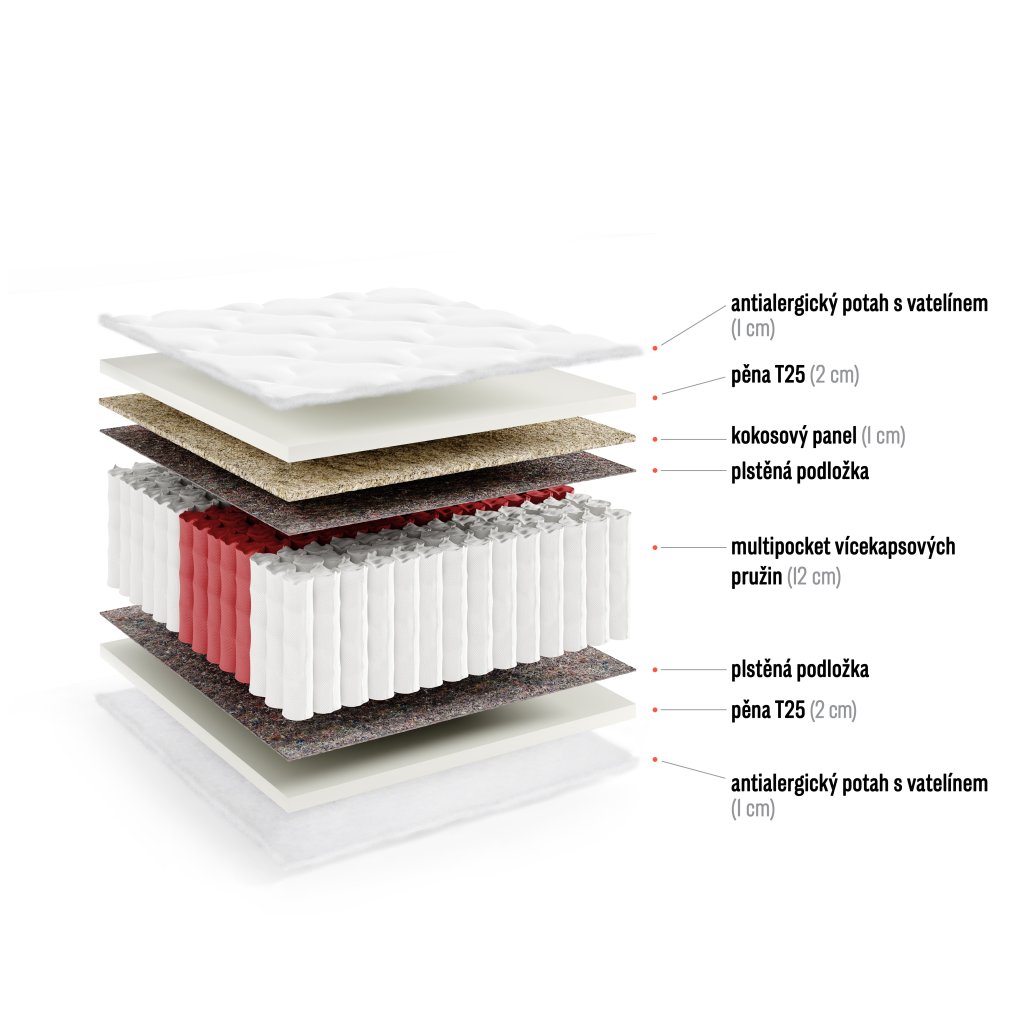 Vícekapsová taštičková matrace s kokosem LAS VEGAS 80x200 cm 19 cm